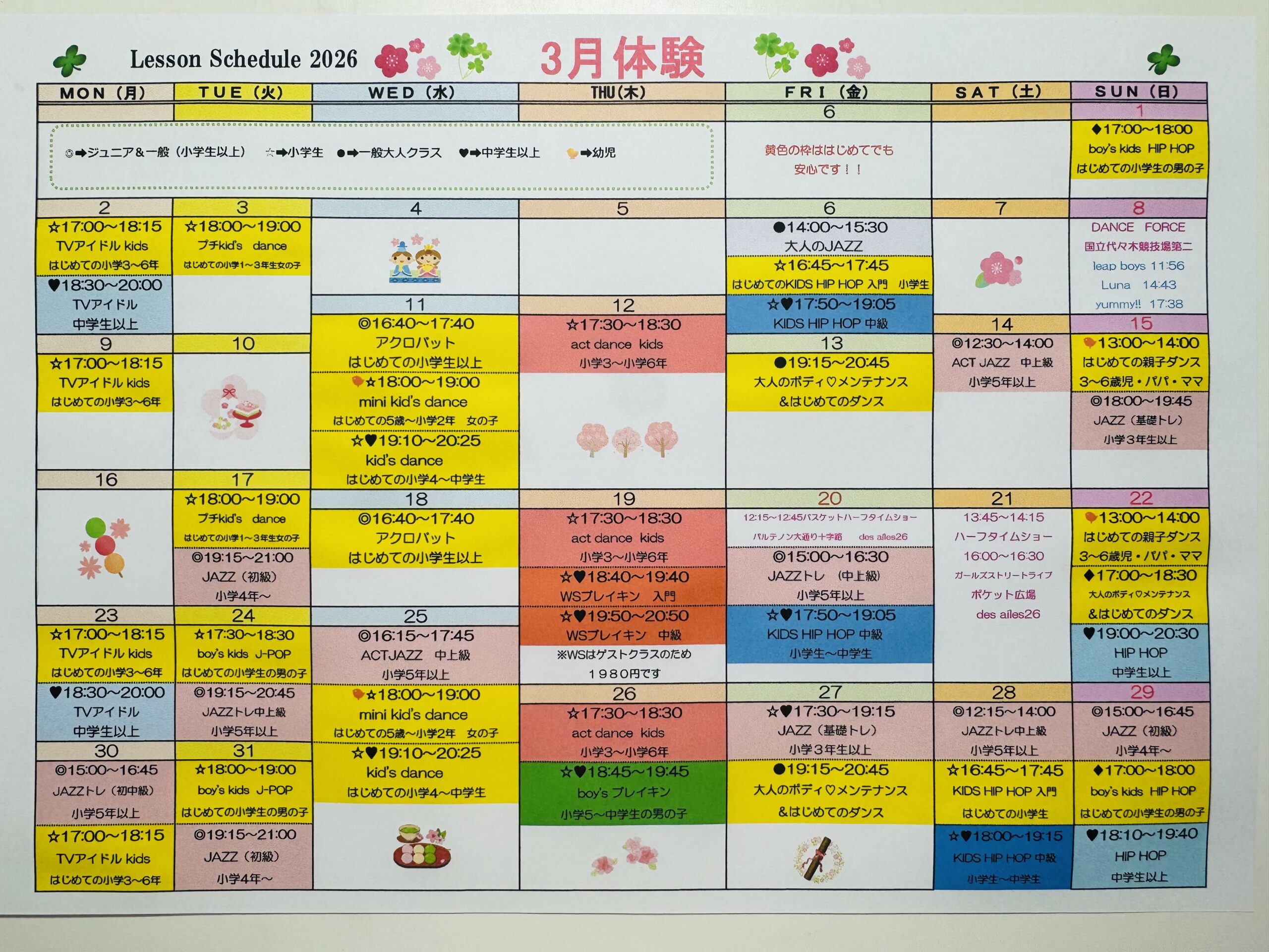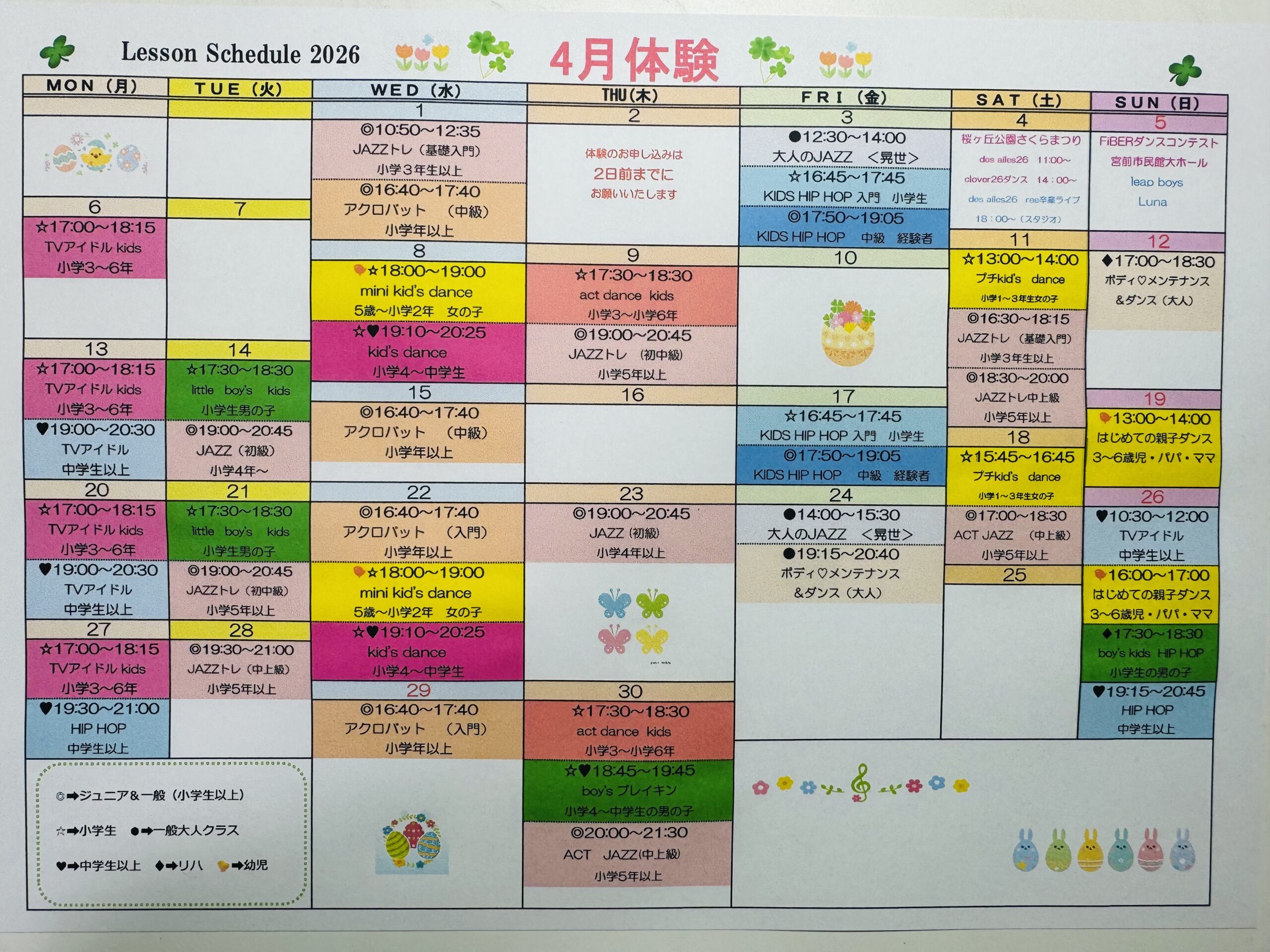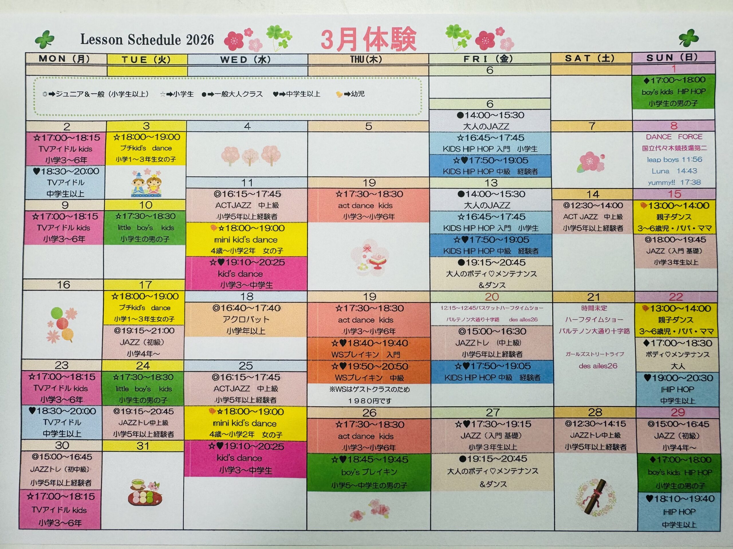 体験レッスン料金は800円です。いろんなクラスをみてね!!