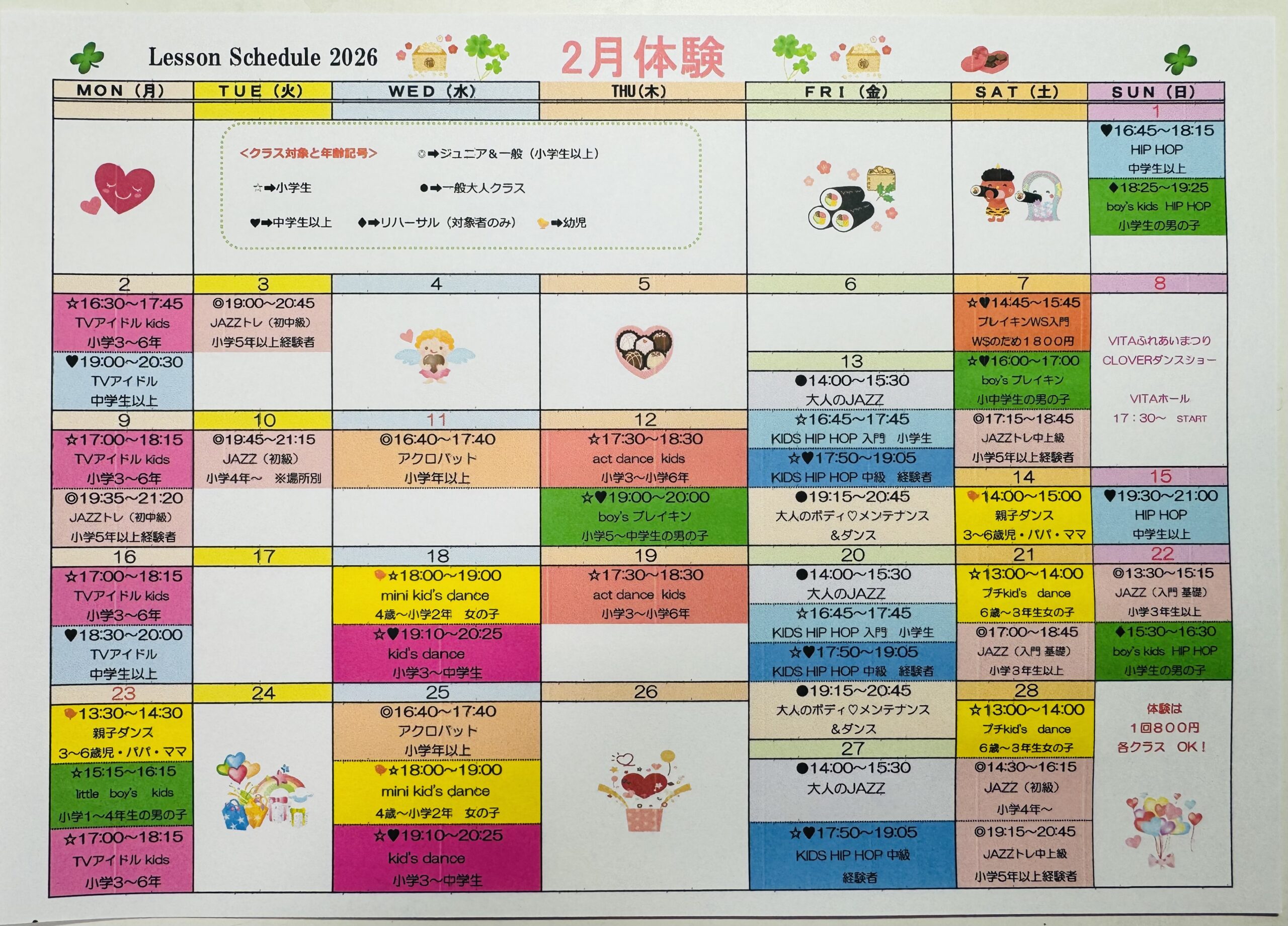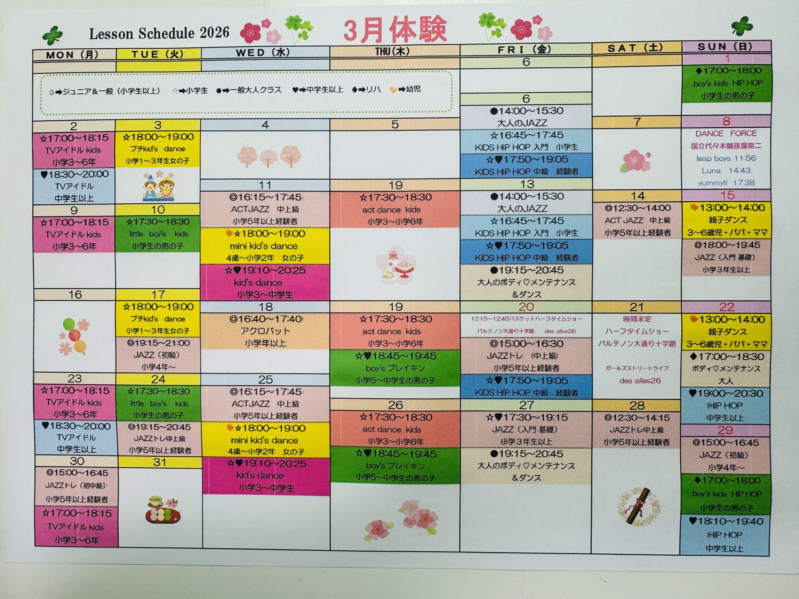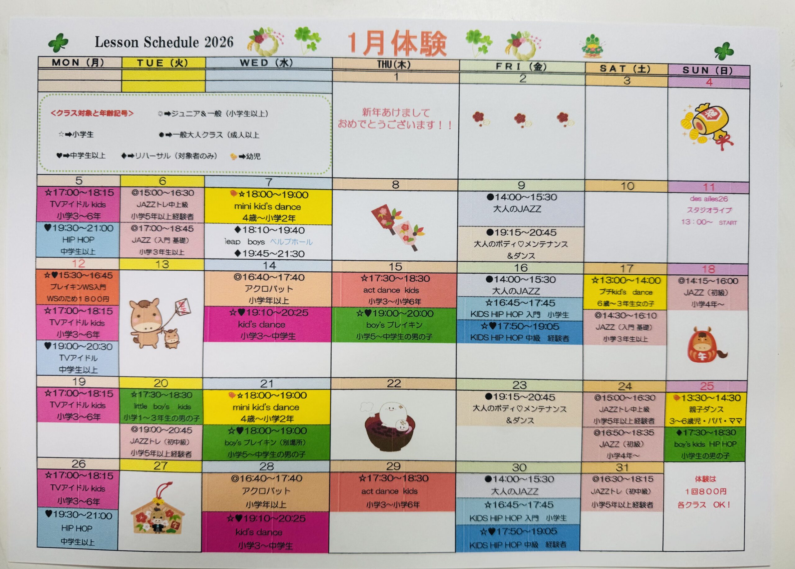 体験レッスン料金は800円です。いろんなクラスをみてね!!
