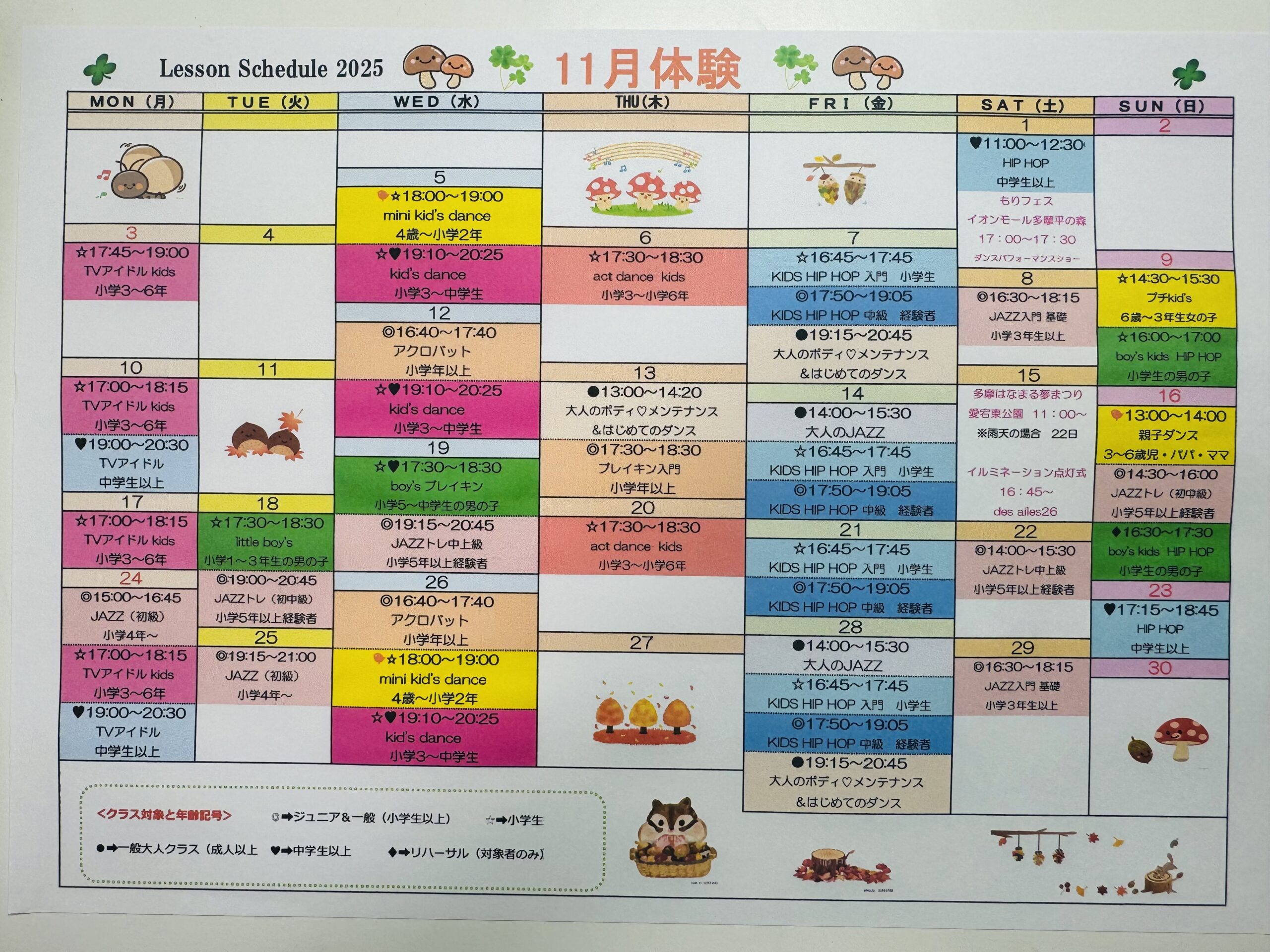 体験レッスン料金は800円です。いろんなクラスをみてね!!