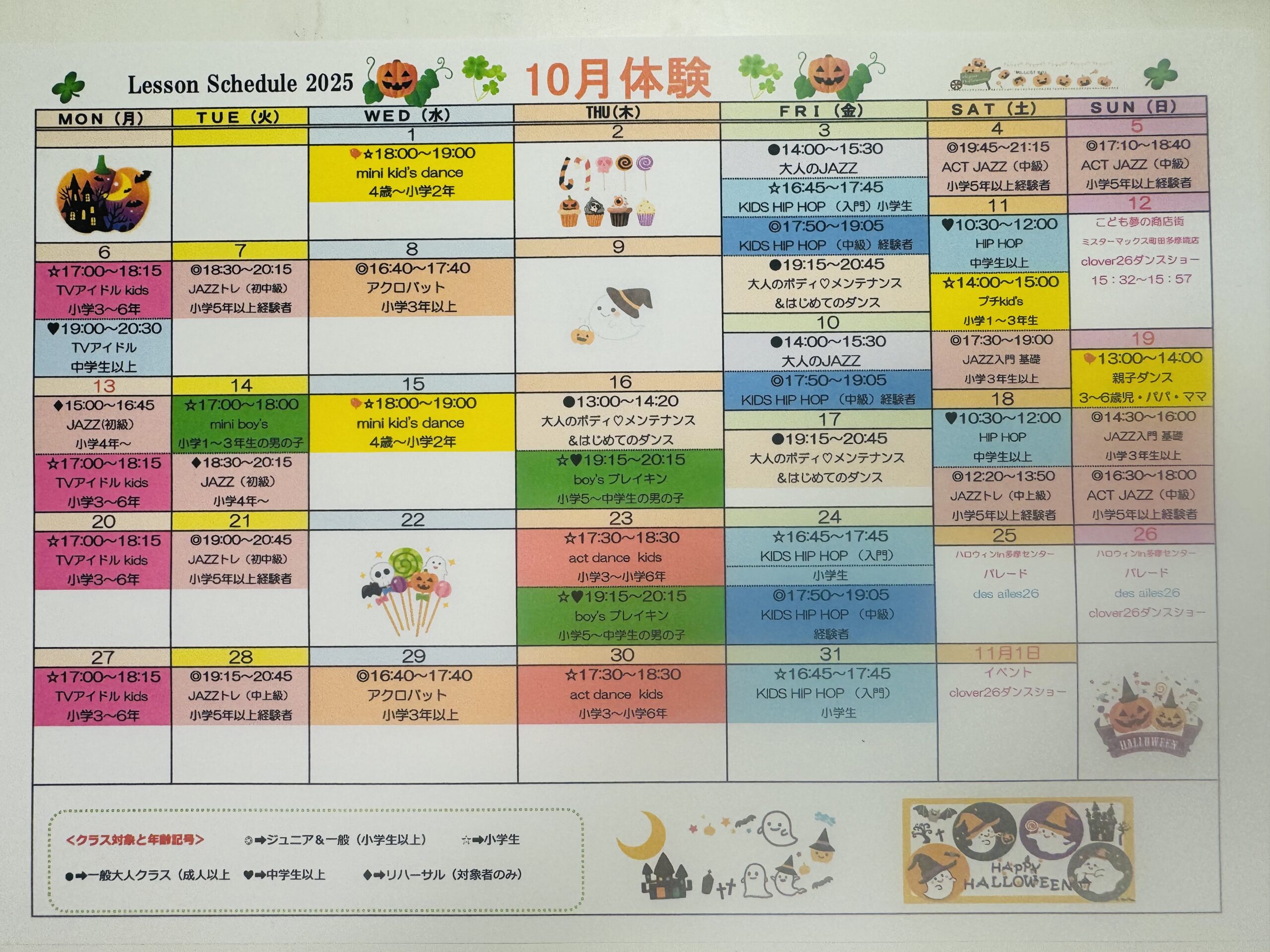 多摩市のダンススタジオ「clover26」では、エンターテイメント性あふれる様々なレッスンをご用意しております。