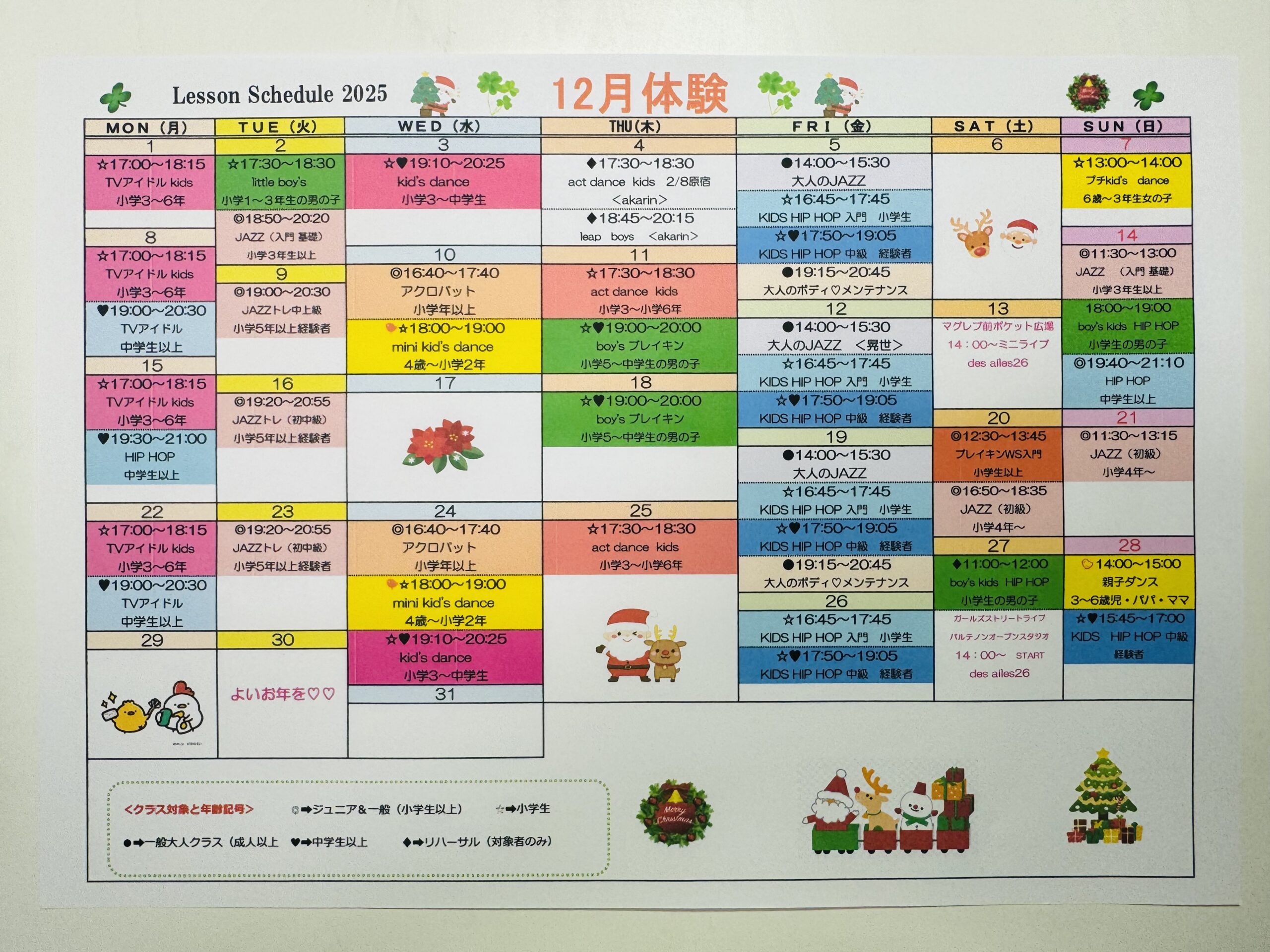 ※レッスンのスケジュール日時は変更になる場合がございます。